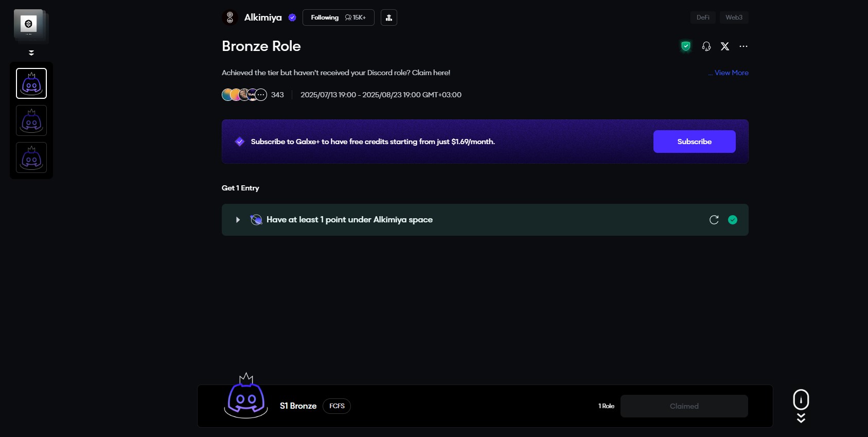On May 8, Alkimiya launchedFourier, its Social Rewards Program! By completing tasks, you can earn points, level up through Bronze, Silver, and Gold tiers, and unlock increasingly valuable rewards.