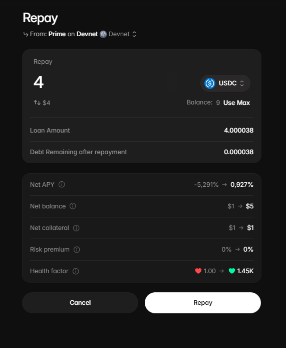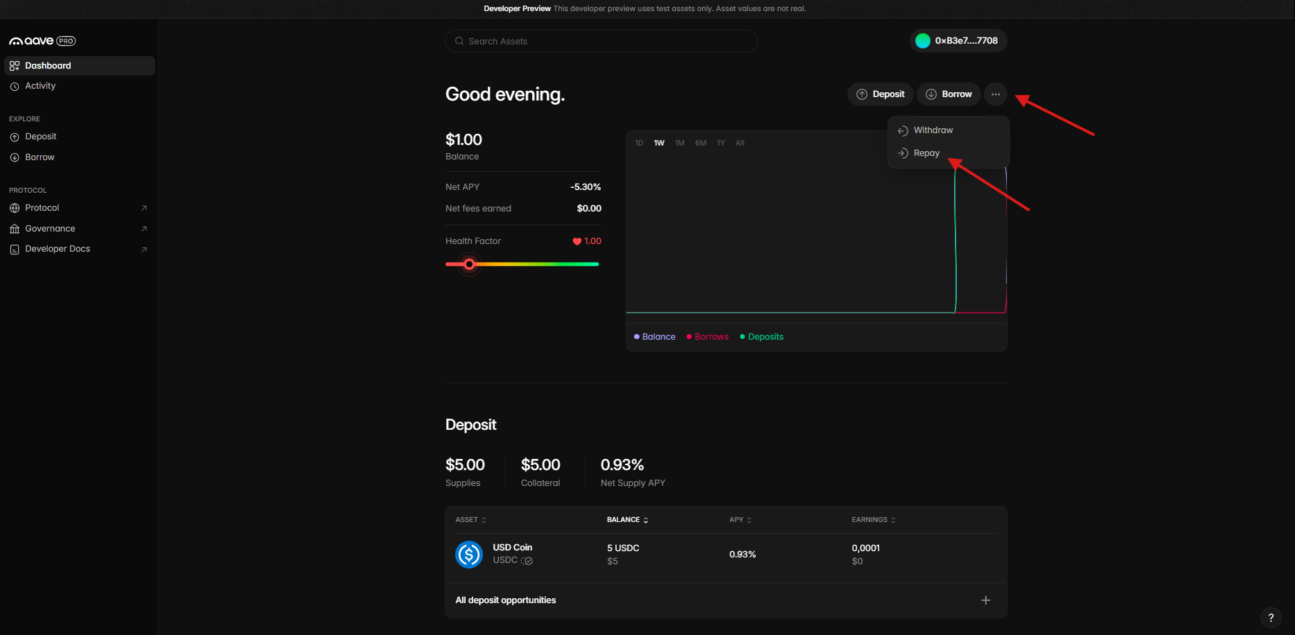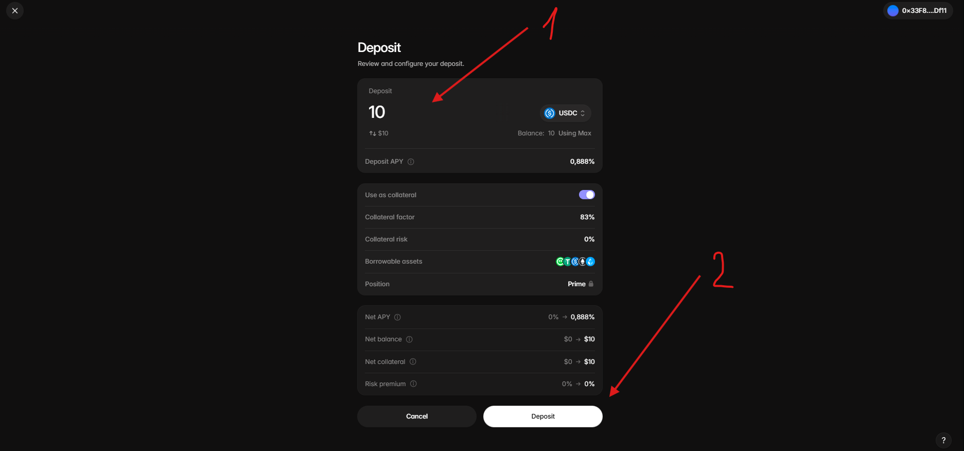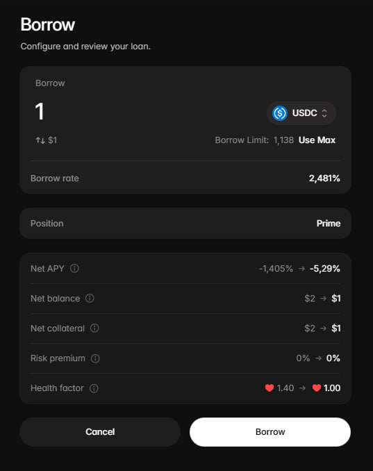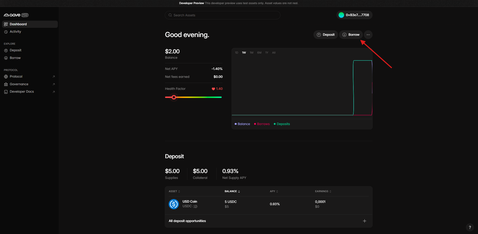 Then open the Borrow tab, choose an asset and the amount you want to borrow: