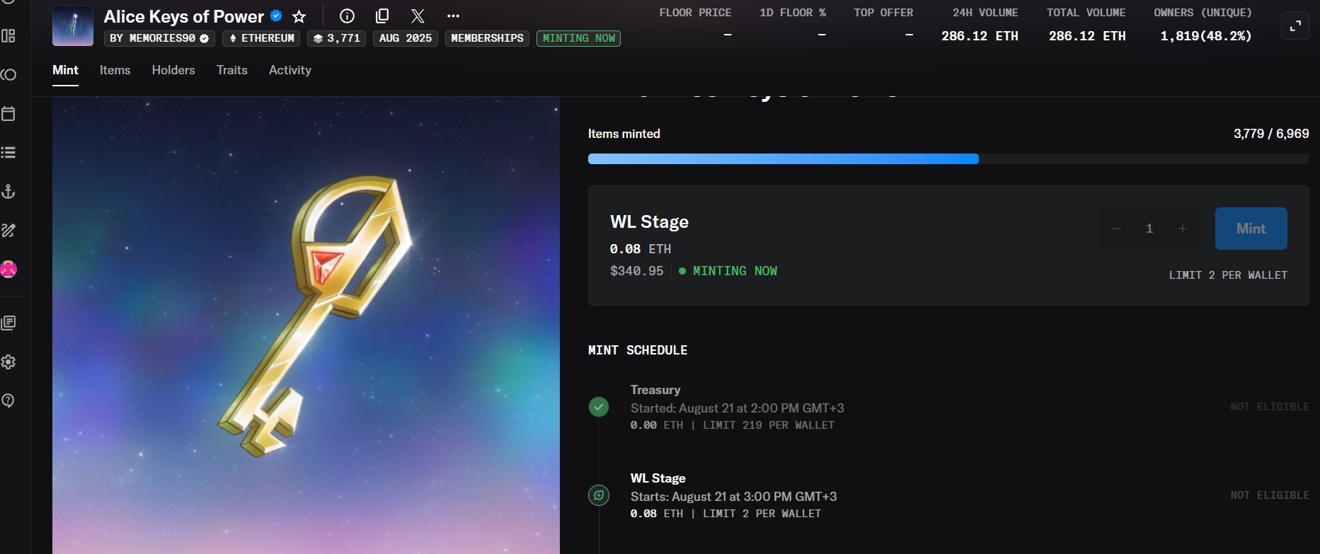 On August 8, 2025, they announced its NFT Collection: Alice Keys of Power.