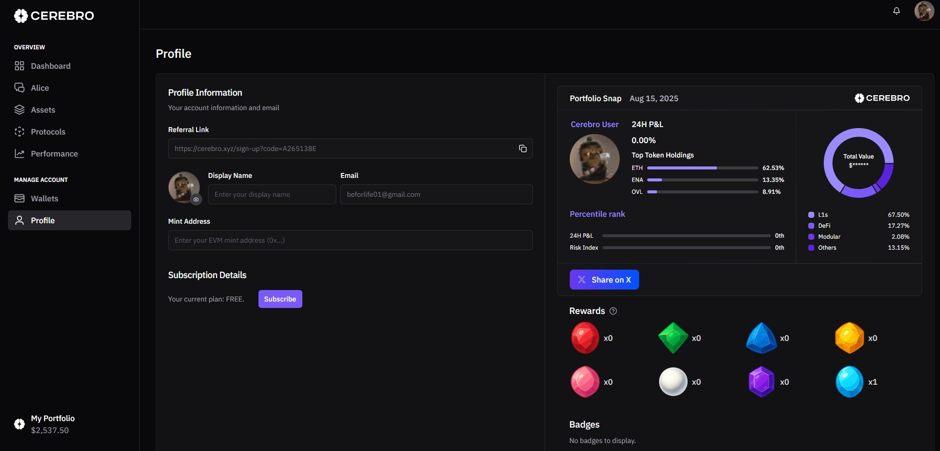 On December 9, 2025, Cerebro has updated its reward system. Previously, users earned gems, but the team has now introduced points instead. All accumulated gems will be converted into points in the future. Each week, 1 million points will be distributed, with 20% allocated to NFT holders.