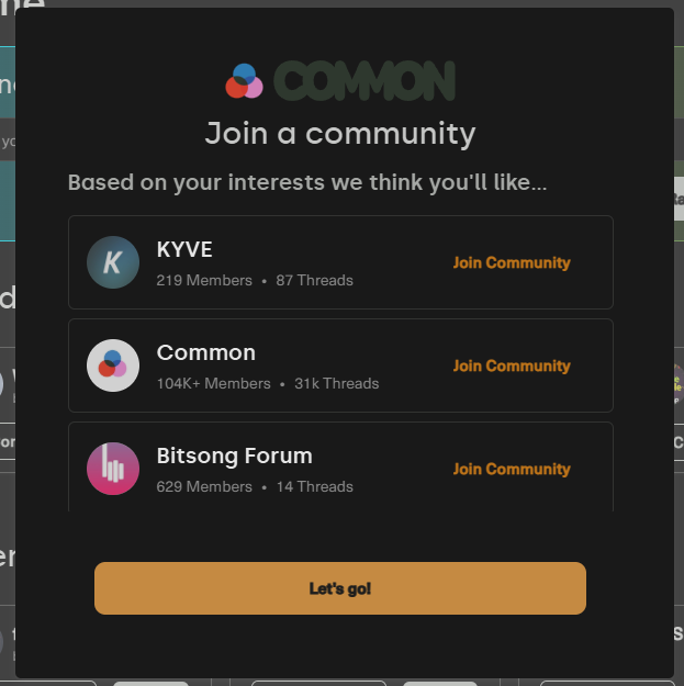 Join a few recommended communities and click Let’s go!