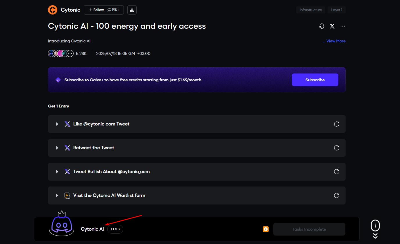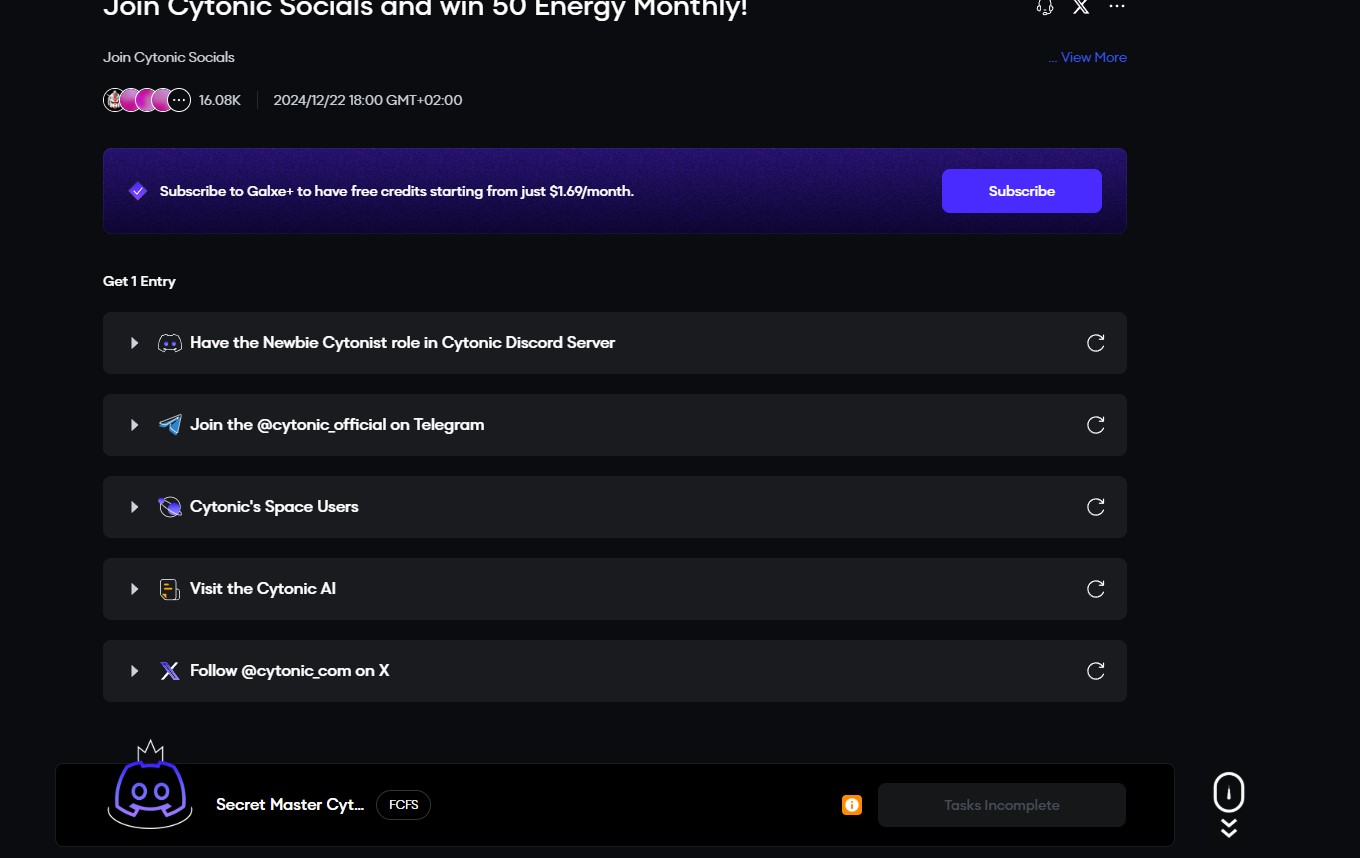 Currently, there are two available Galxe quests where you can earn the Secret Master Cytonist and Cytonic AI roles. Stay tuned for updates so you don’t miss out on new quests and roles.