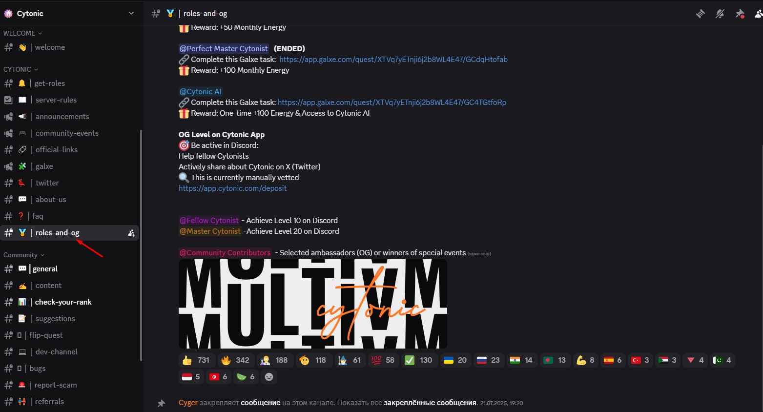 Explore the role system in the #roles-and-og channel.