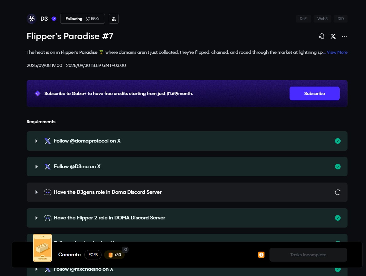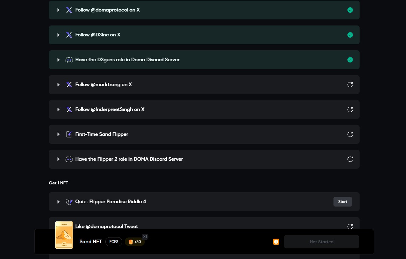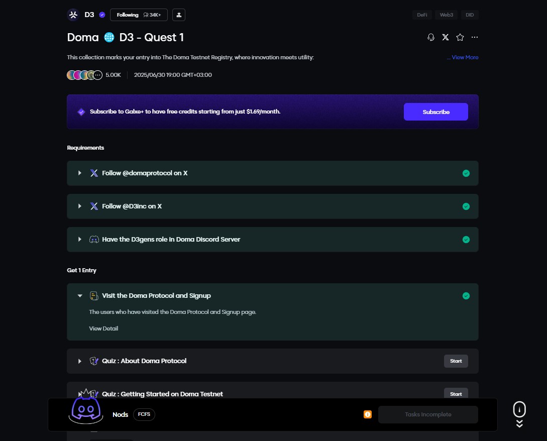 To obtain the Dommer role, take part in the Meme Contest on Discord. Create a meme related to domains, software, AI, or brag com, post it on Twitter with a tag to @domaprotocol, and then share the tweet link in the discord-quests channel: