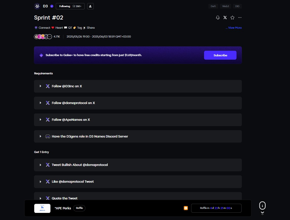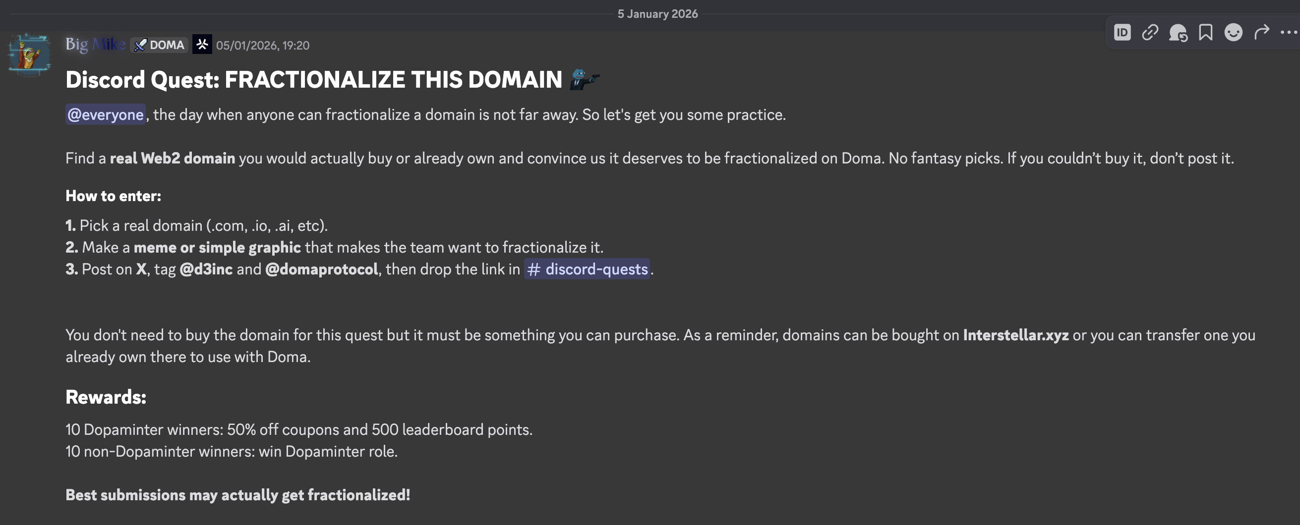 On January 5, 2026, D3 has launched a new Discord giveaway where participants can compete for the Dopaminter role. To enter, create a meme featuring a real domain and share it on X.
