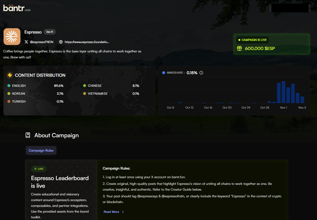 Espresso is not a new project and has been regularly running activities since 2024, which are currently inactive. However, on September 22, 2025, Espresso launched a new campaign where participants have the opportunity to win a Composable NFT for free.