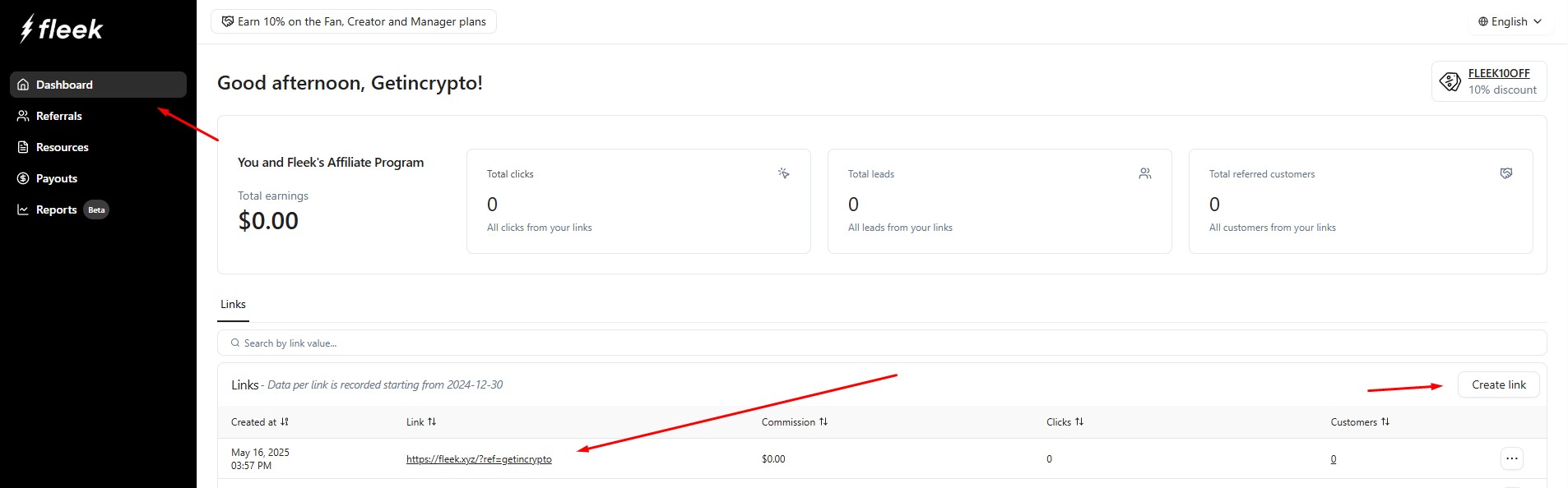 Additionally, Fleek introduced an Affiliate Dashboard where you can invite others via your referral link — referrals will also count toward airdrop eligibility.
