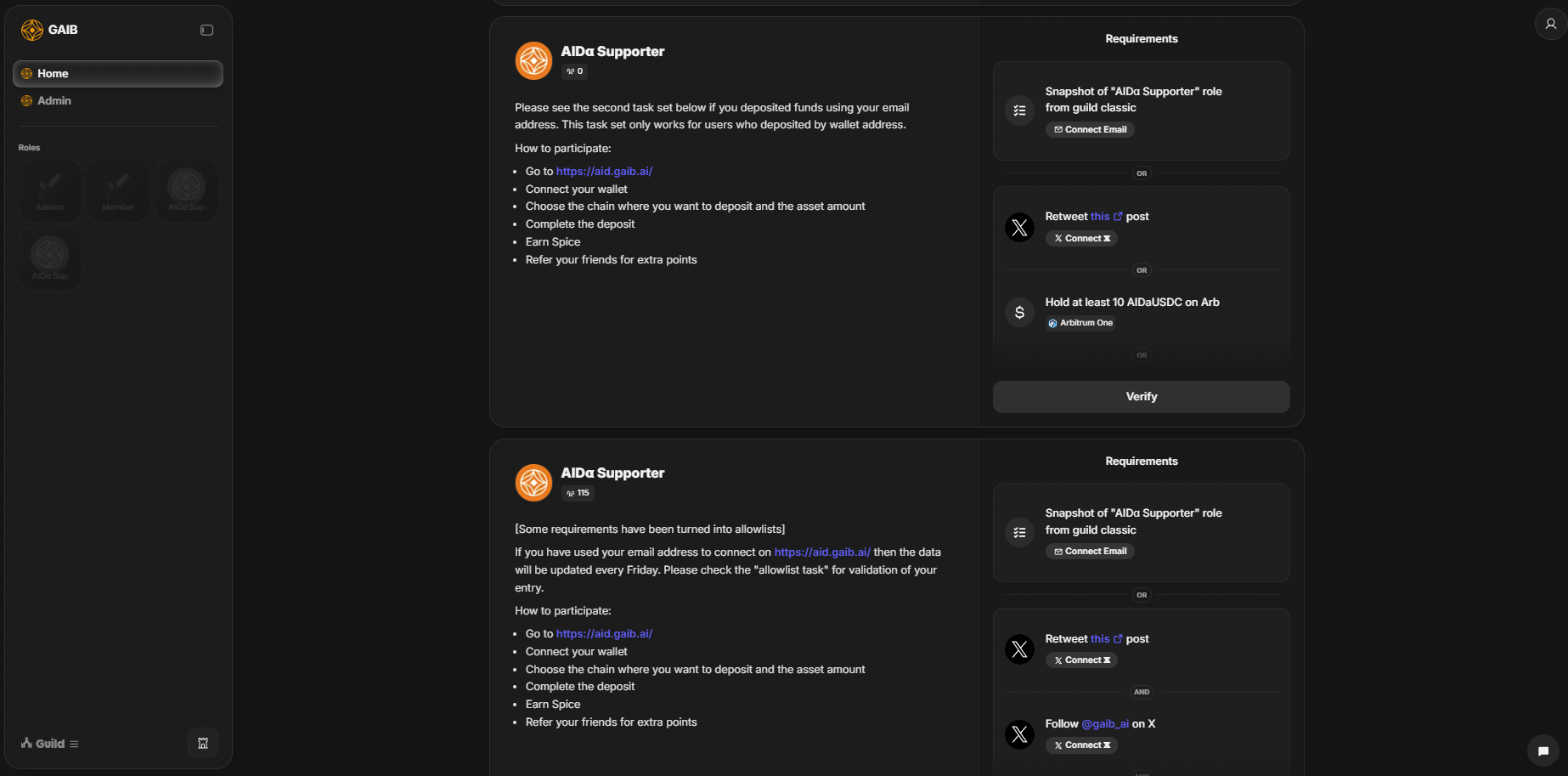 Go to the Deposit tab and deposit your stablecoins into your preferred pools on your chosen chain. Your USDT and USDC will be automatically converted into AIDaUSDT and AIDaUSDC. Each AIDa token earns 1 Spice per day.