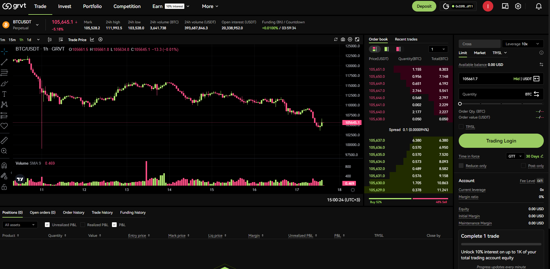 Go to the Trade tab and start trading — the higher your trading volume, the better your rewards.