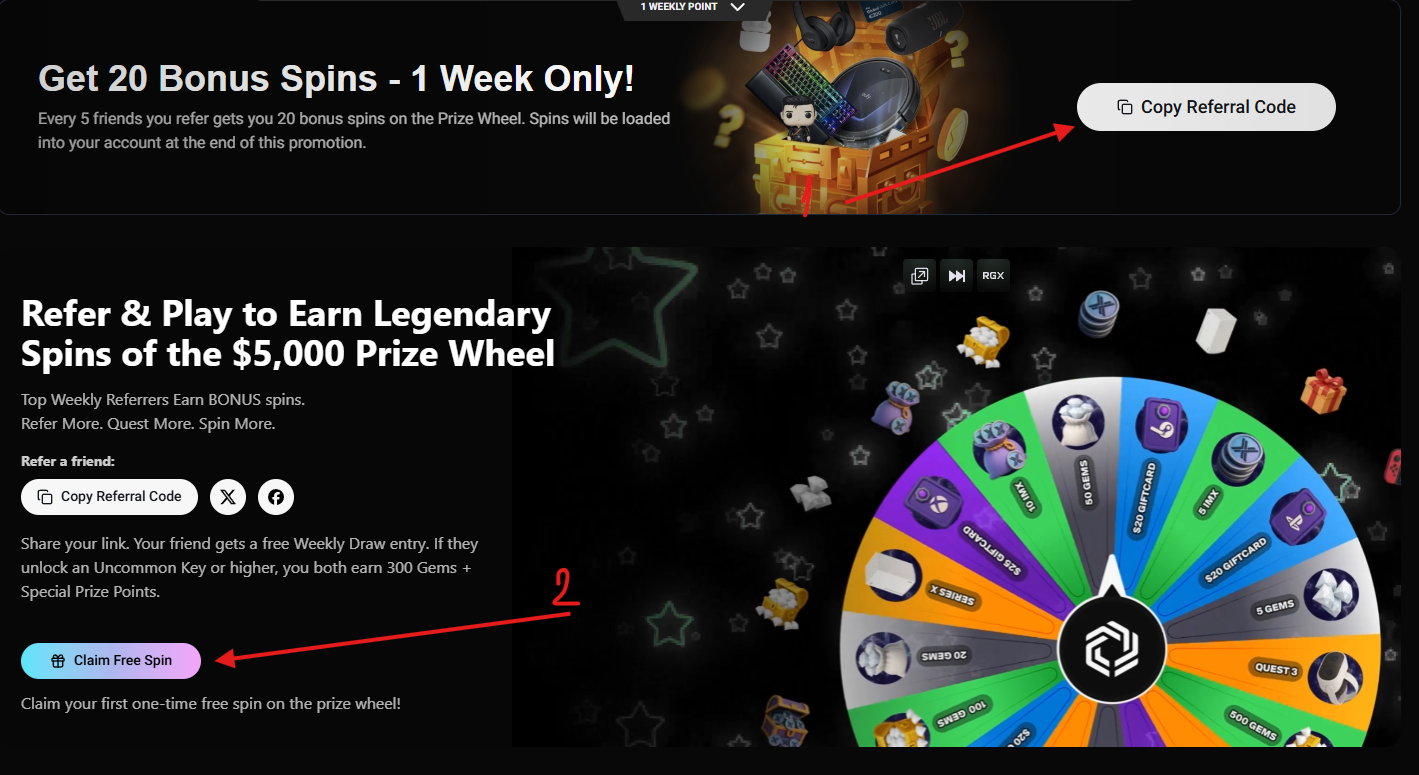 Claim your free spin and invite friends to earn more:
