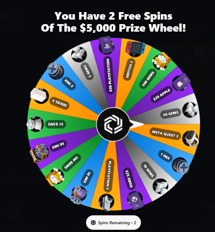 Immutable has launched a Wheel of Fortune on its gaming portal. You can earn free spins by inviting friends and have a chance to win a PlayStation 5, $IMX tokens, and other prizes.