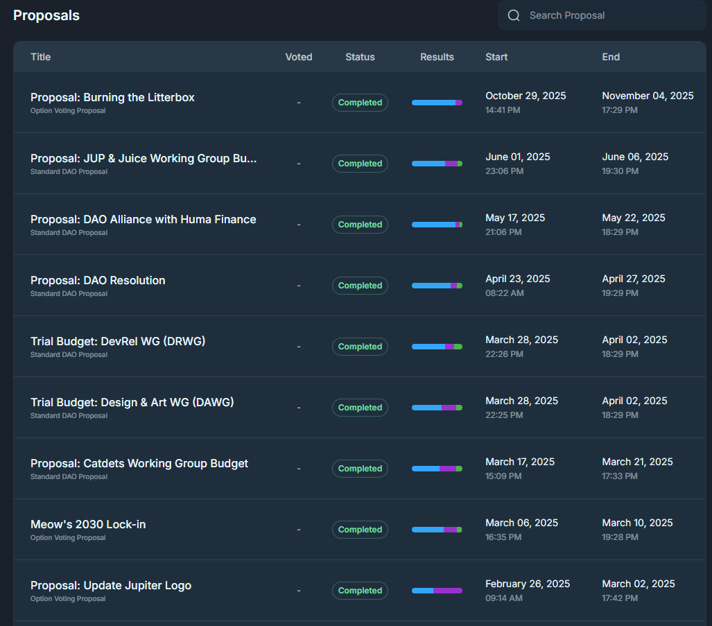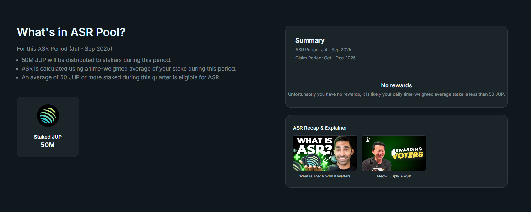 Jupiter is not a new project in this space, and back on December 4, 2024, it held many different votes that had real impact, but they are now inactive. You can take part in the ASR program, which rewards Jupiter users for staking and voting with the $JUP token.
