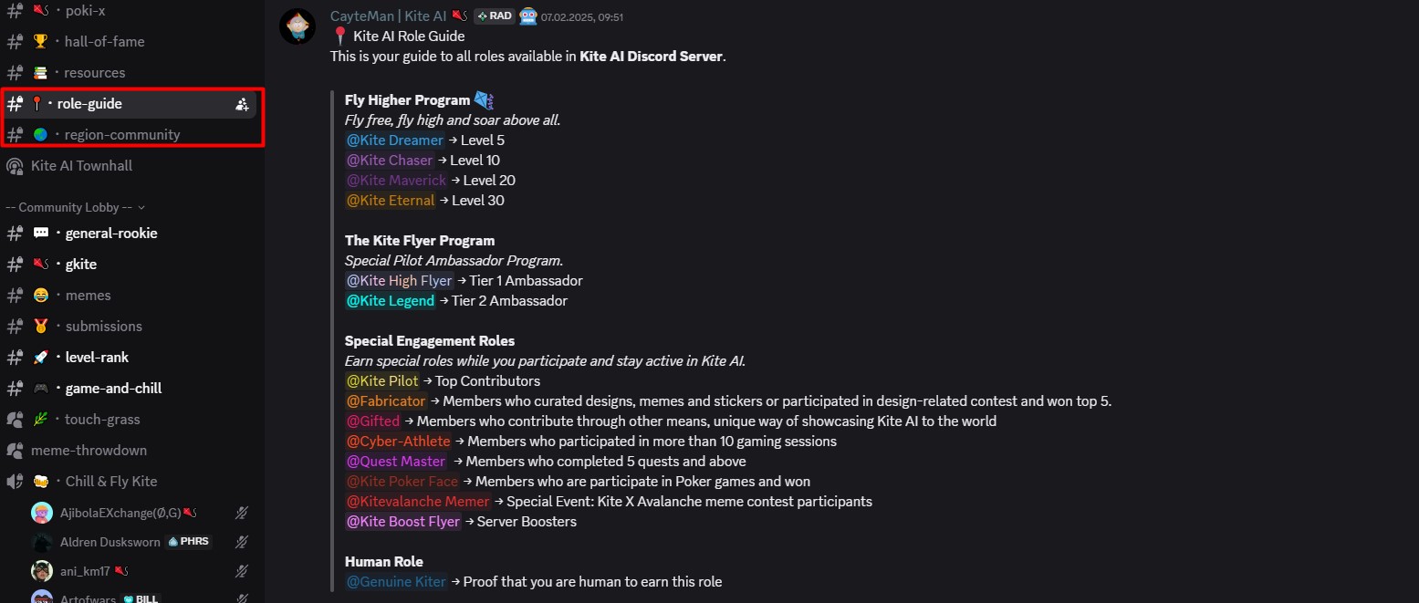 Kite Discord Community Builders: Members who have consistently participated in and organized community activities, helped maintain a positive and orderly environment, and achieved higher-level community roles. All contributions must be verifiable.