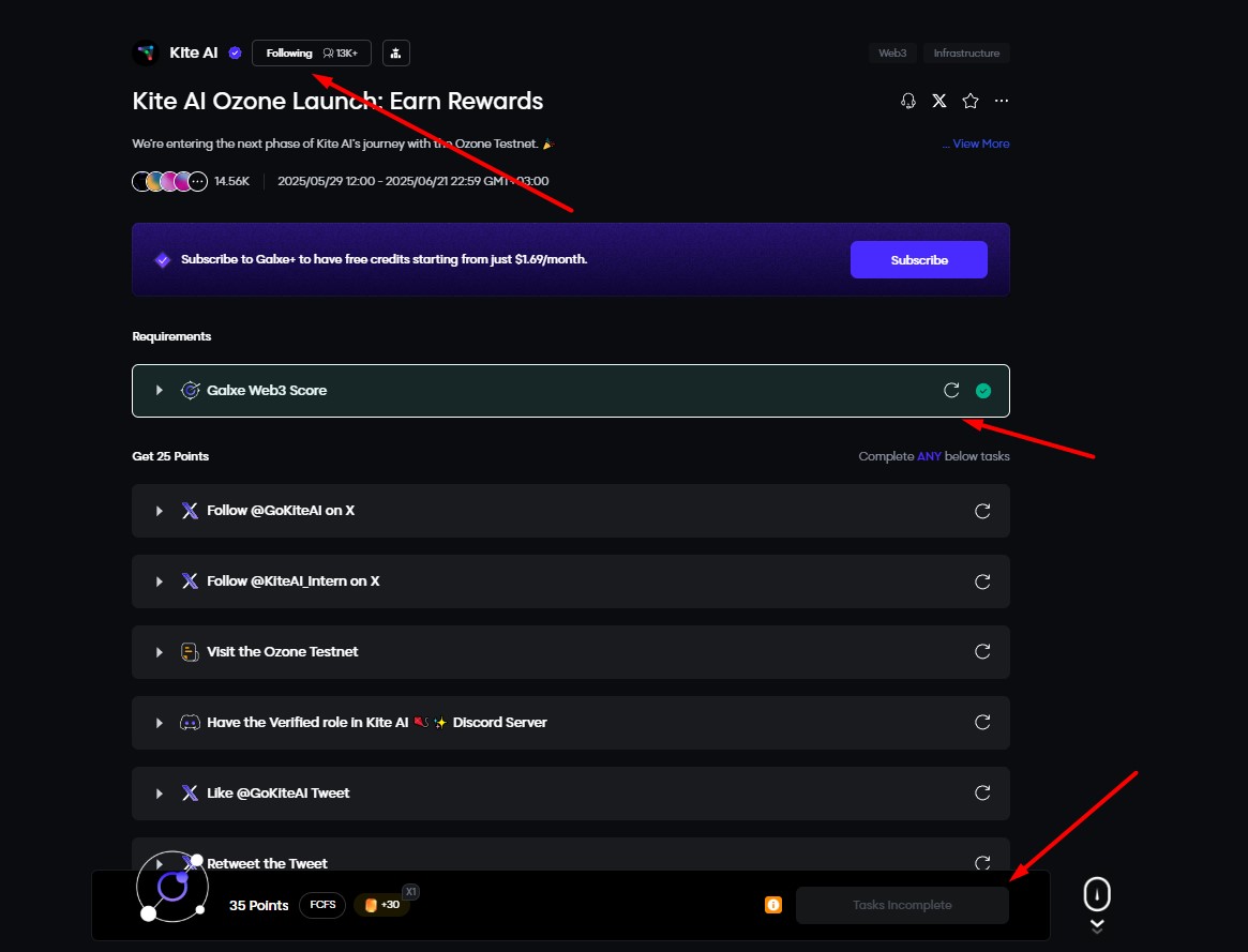In February, Kite launched their incentivized Testnet V1, called Aero. On May 22, 2025, it was upgraded to Testnet V2, Ozone. This means it’s still not too late to get involved and potentially earn future rewards. Participation is free and doesn’t require much time.