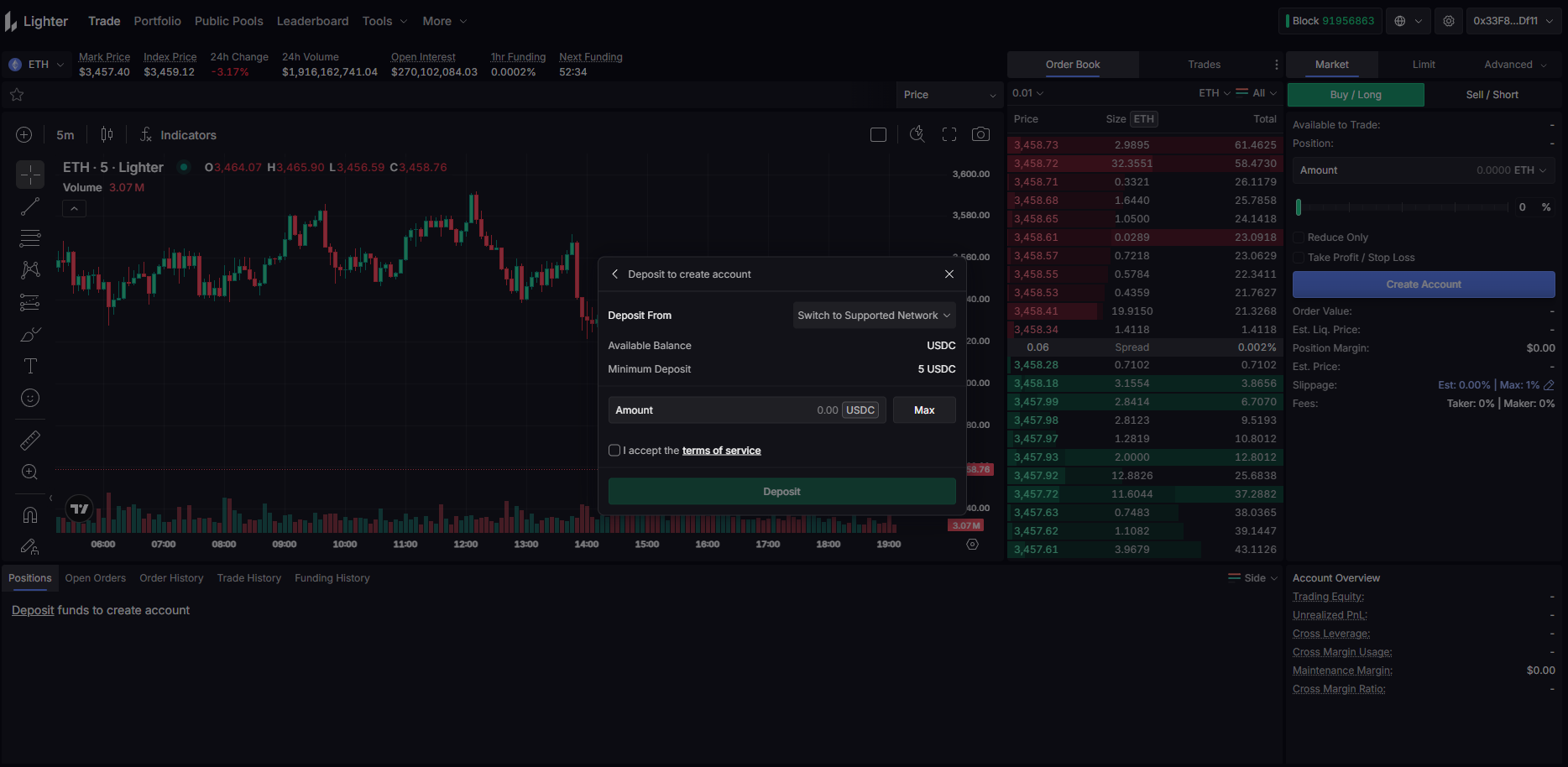 Activate your account by depositing at least 5 USDC.