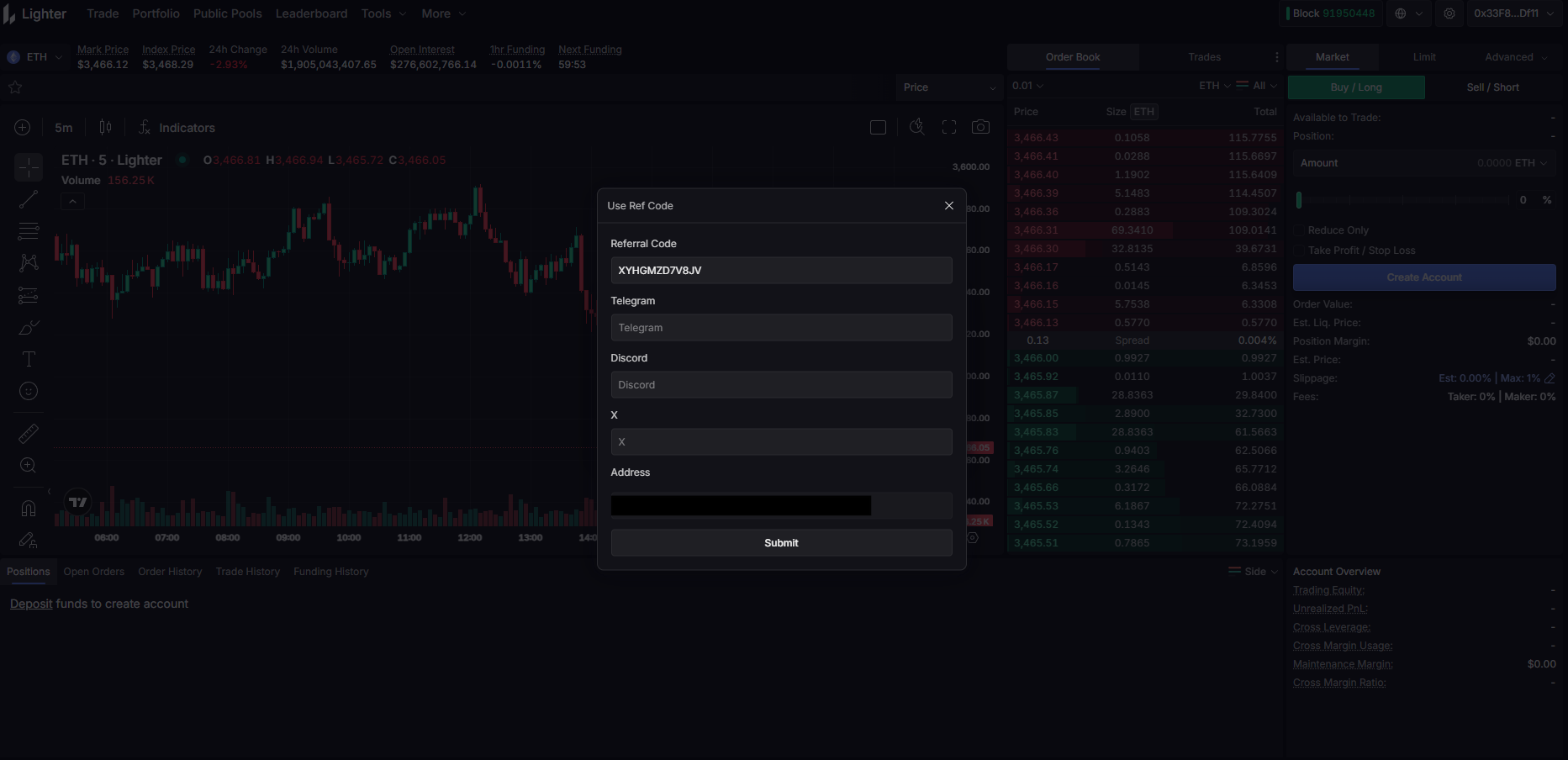 Go to the website, connect your wallet and type your referral code with your social links.