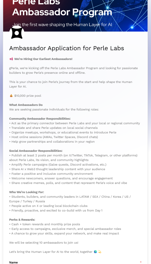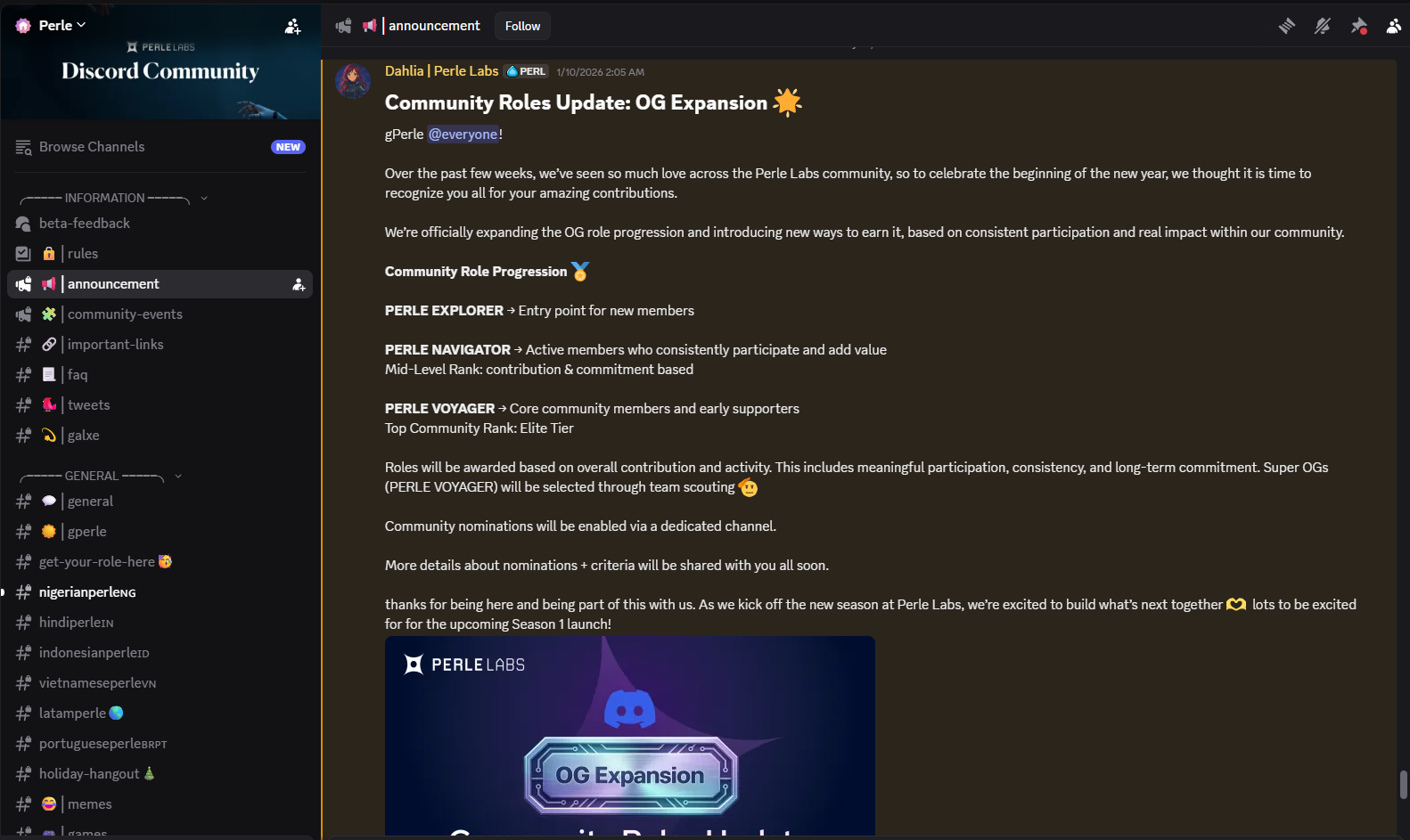 On January 19, 2026, Perle has launched Season 1 of its points campaign. Users can earn points and potentially qualify for a future airdrop. Unlike the Beta phase, Season 1 is open to everyone.