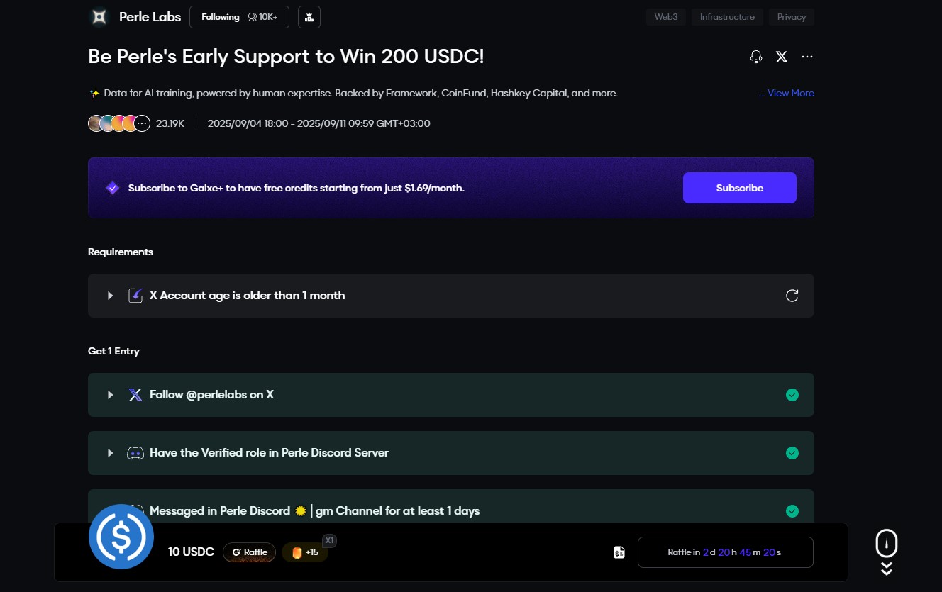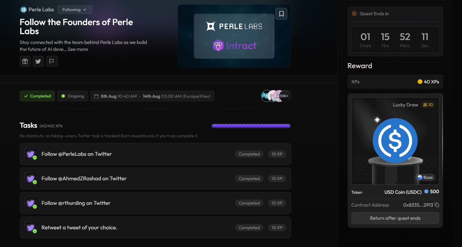 On August 11, 2025, Perle launched its Intract quests. The project is still in its early stages, making this a great opportunity to get involved now and gain an advantage over members who join later.
