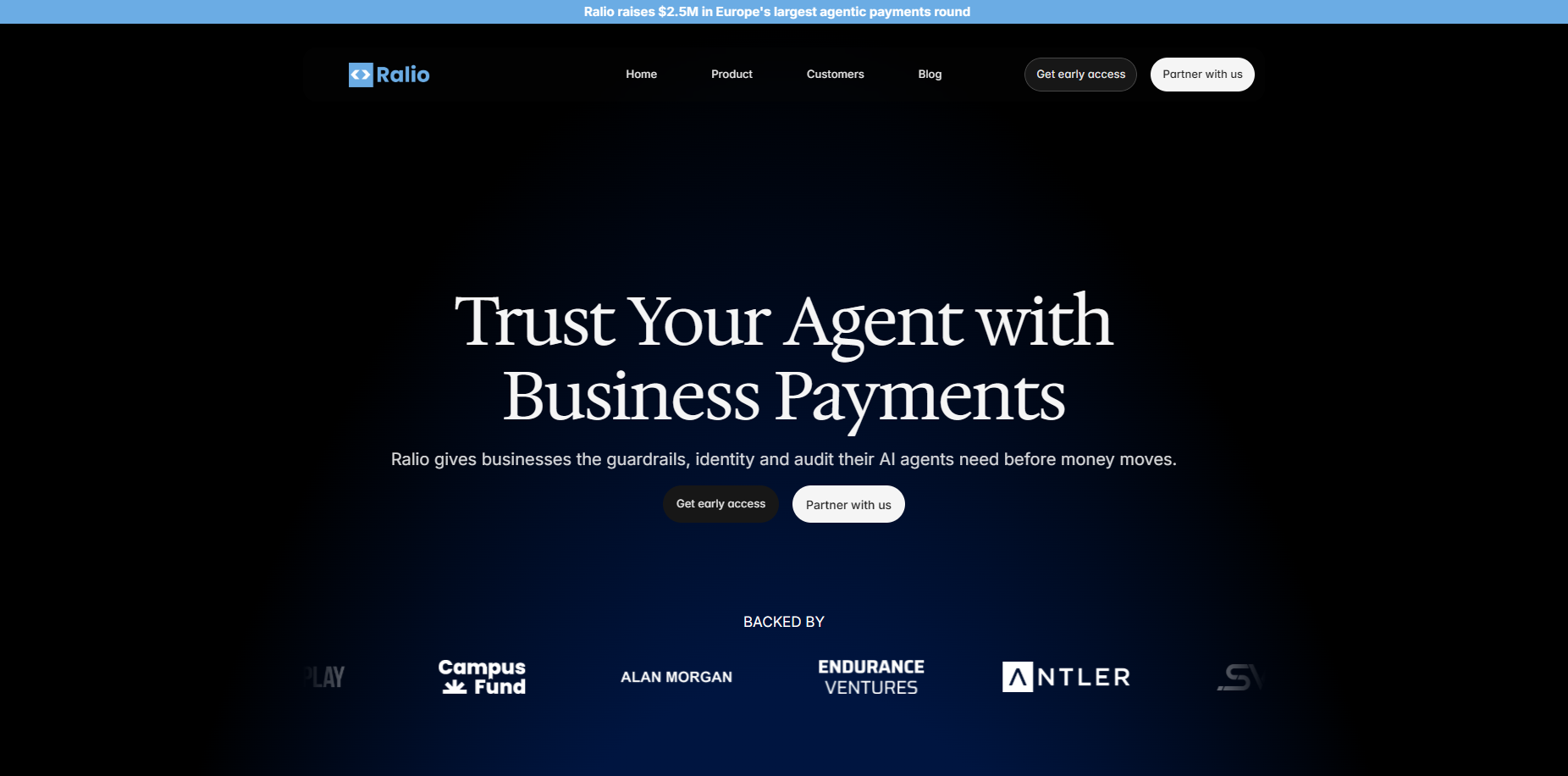 The platform integrates with existing payment providers and supports bank transfers (FPS, BACS, SEPA), cards (Visa, Mastercard, Amex), stablecoins (EURC, USDT, USDC), and its own instant wallet. Rather than deciding what agents do, Ralio determines whether a payment should go through by verifying intent, enforcing rules, and recording every step before funds are moved.