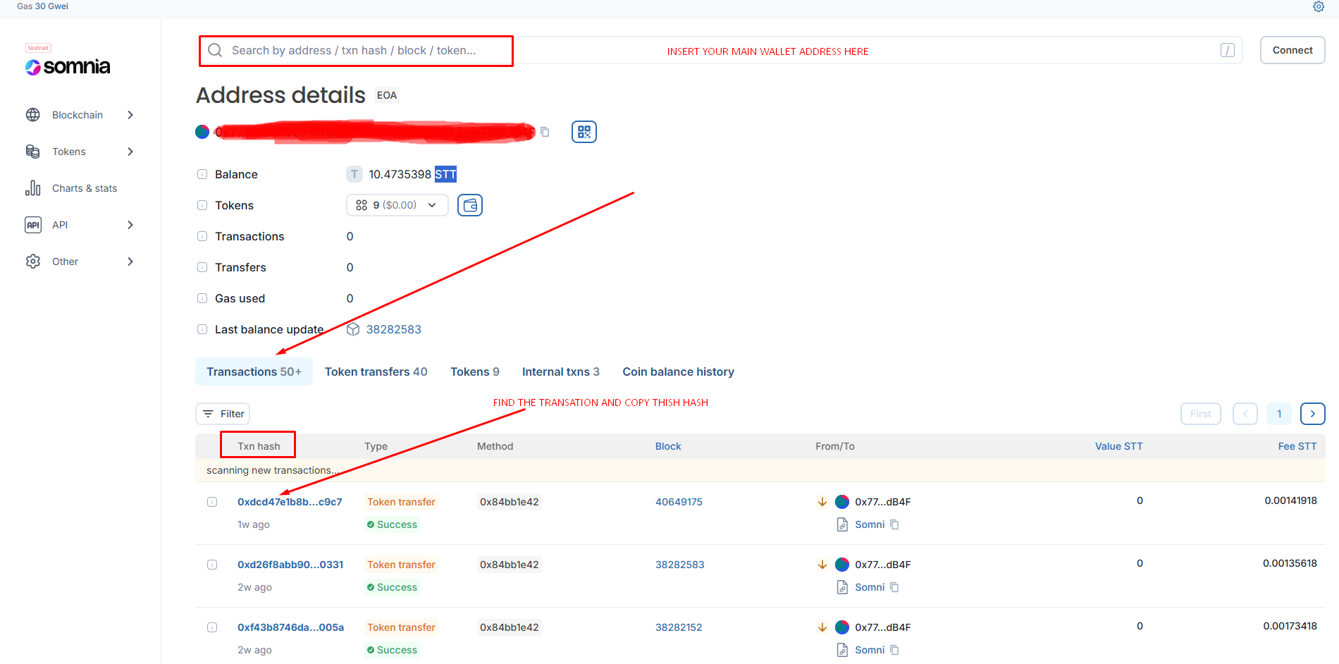 You need to receive STT tokens from real user. To do this you can create another one wallet and send tokens there then back or ask somebody to send you the tokens. You can go to Discord and ask somebody there in #send-receive-tokens channel. Go to the explorer and find hash of this transaction, copy it and insert in appropriate field for task confirmation (see the screenshot).