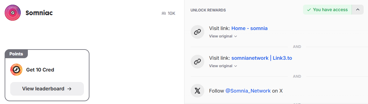 Somnia Yapstorm - this quest is for Kaito users. Users with a strong Twitter presence, many posts, and followers can participate. To complete it, you need to create qualifying content about Somnia and earn Yaps on Kaito. Only the top 100 users on the leaderboard are rewarded each week.