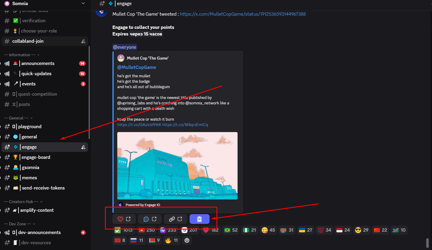 Go to #engage channel and interact with their posts to earn points. These points will be used for roles. For example, you can earn the 'Raidooor' role if you're among the top scorers on the Engage bot leaderboard.