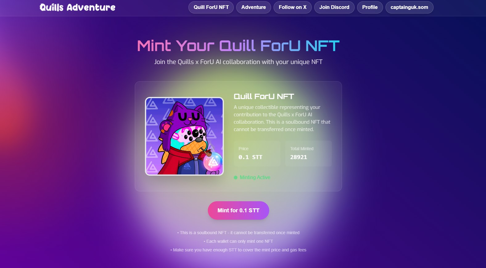 On May 13, 2025, they added new quest ForU Open Edition NFT Mint. Here you need to follow the Twitter, join the Discord and mint the NFT. Deadline - May 17, 2025.