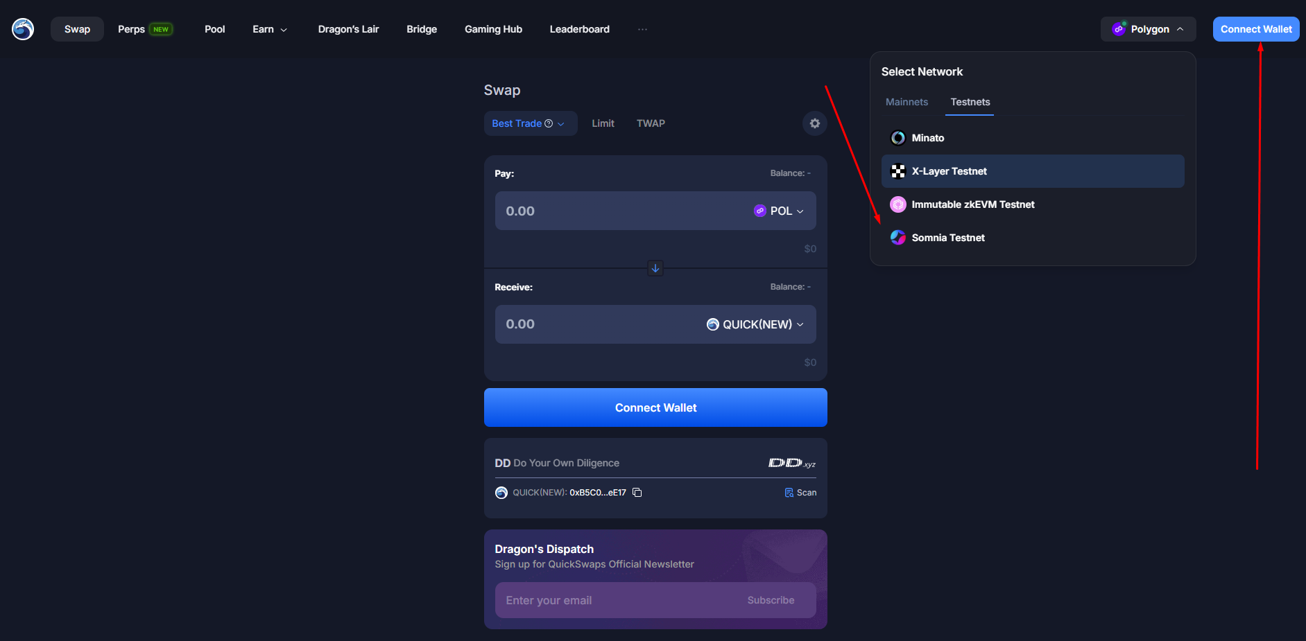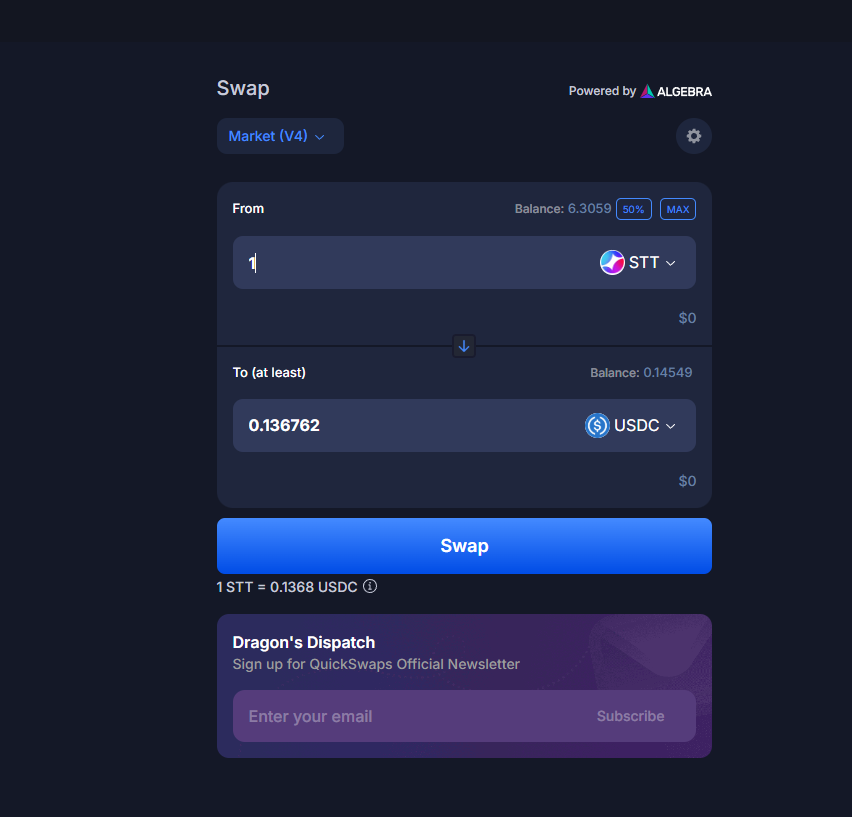 Go to Quickswap, connect your wallet and choose Somnia Network.