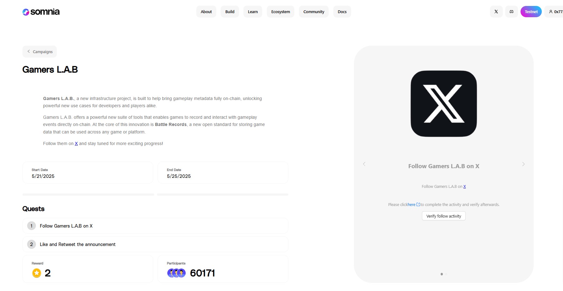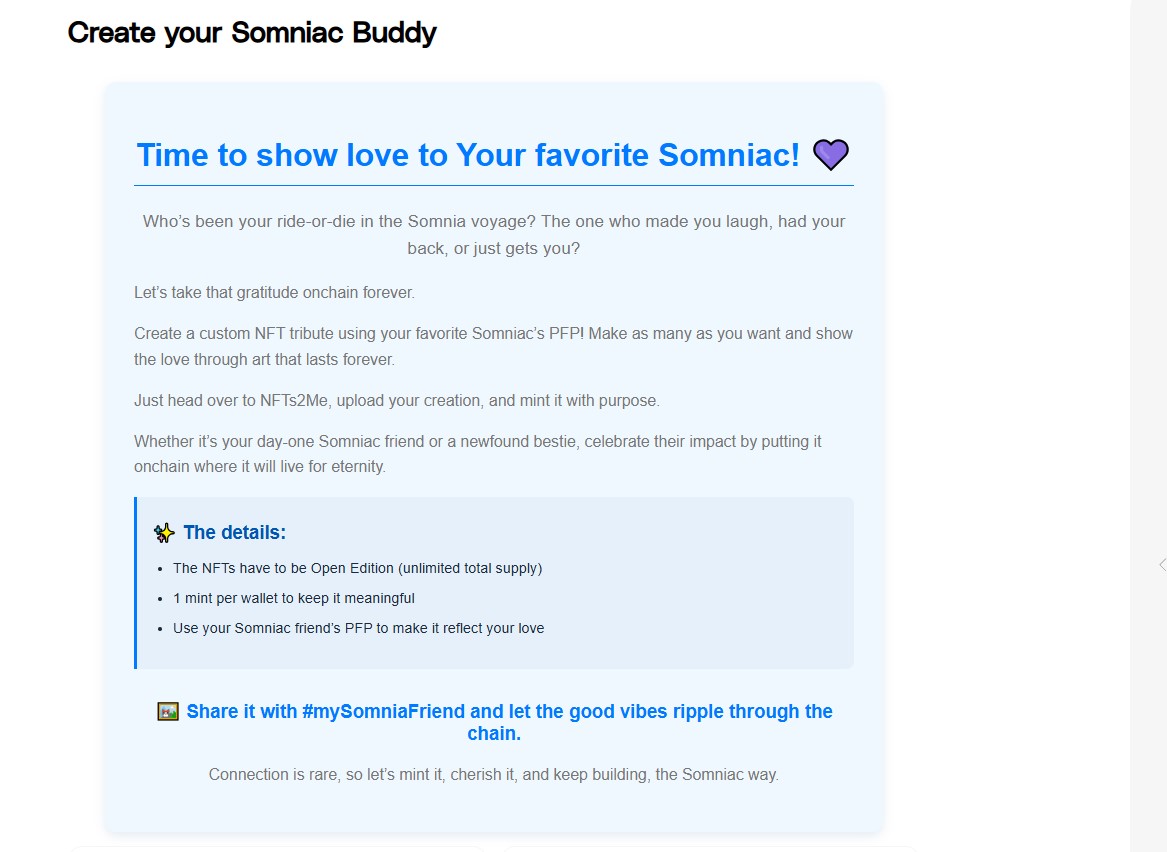 On May 14, 2025, they added new quest Somnia Yappers. Here you need to follow the Twitter, like and retweet the tweet. Deadline - May 18, 2025.