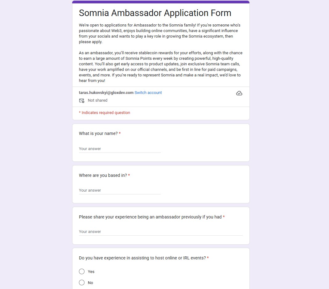 On April 24, 2025, Somnia opened ambassador applications, primarily seeking U.S.-based candidates, though anyone passionate about the project is welcome to apply.