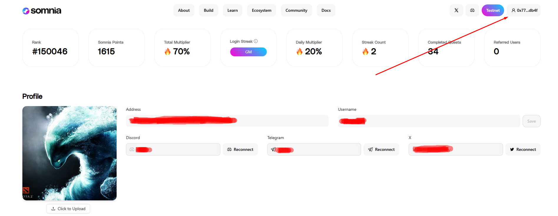 They also have their own Quest Platform, which is part of the testnet, where you can earn Somnia Points. You can track your points on your Profile page.