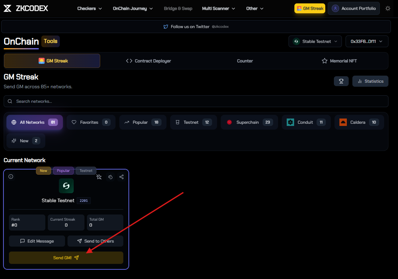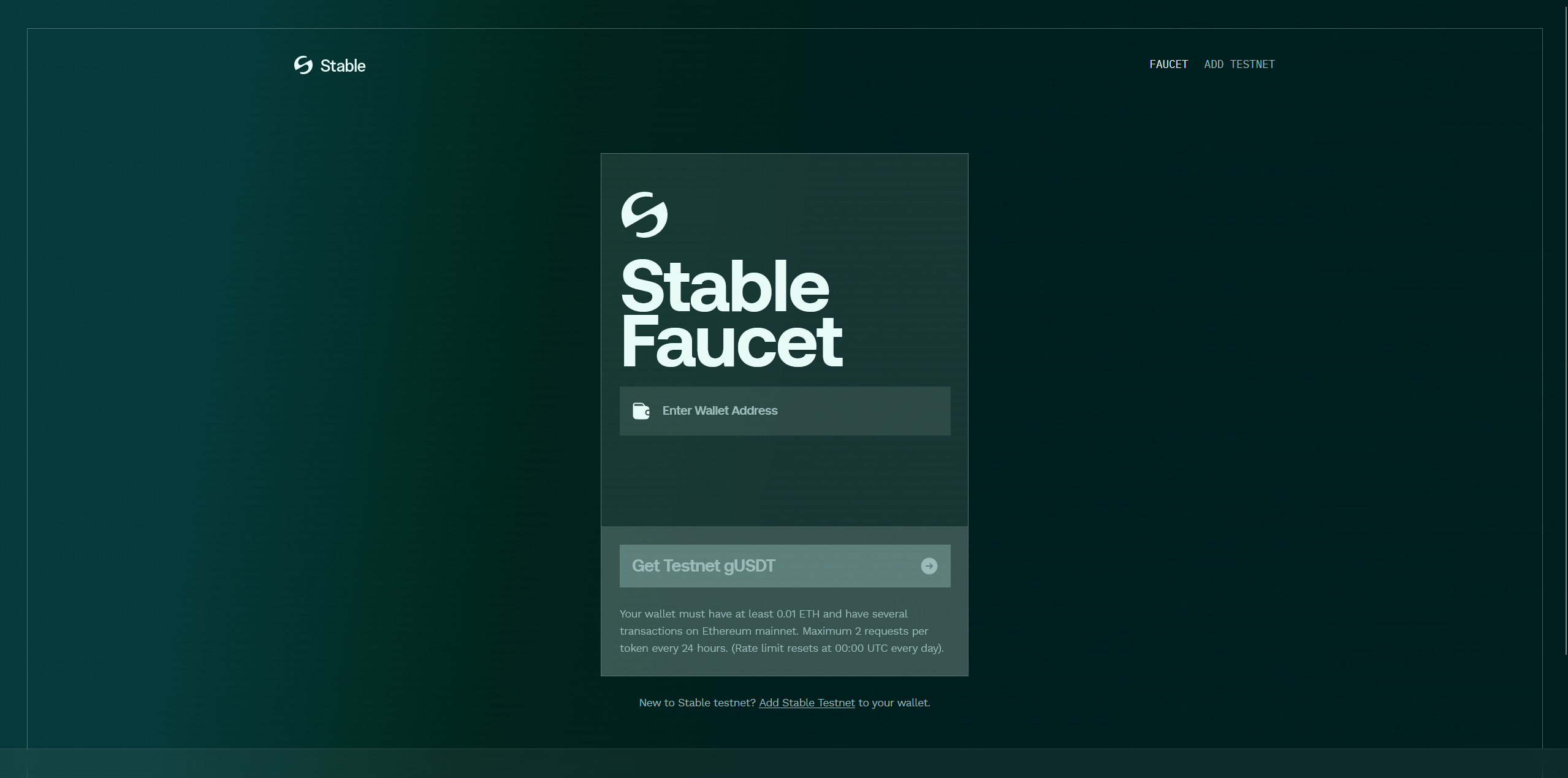 Connect your wallet to the Stable network using the parameters from the Guide.