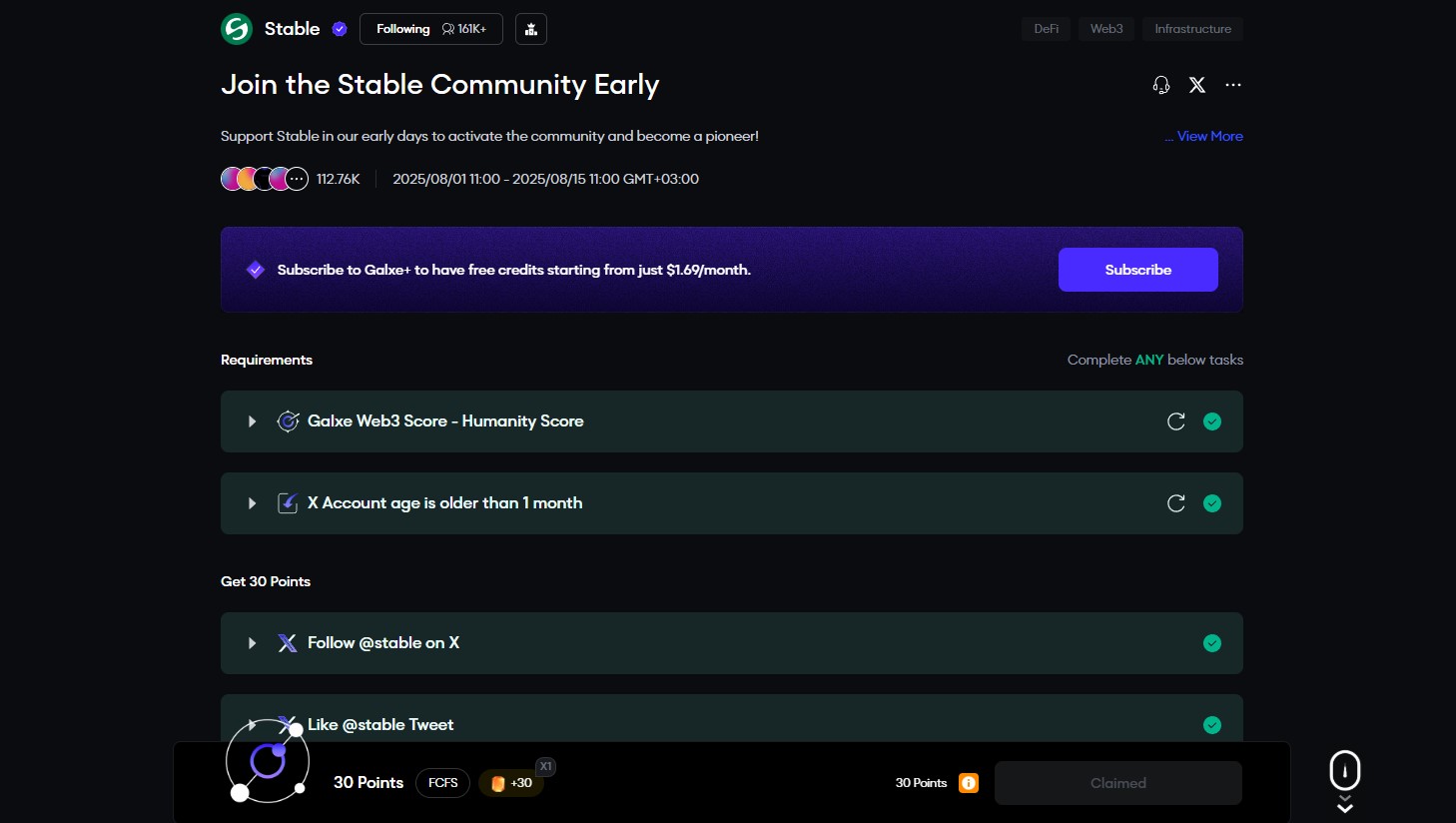 Stable is a new Layer 1 project backed by major investment. We have the opportunity to be early and complete its first Galxe quest.