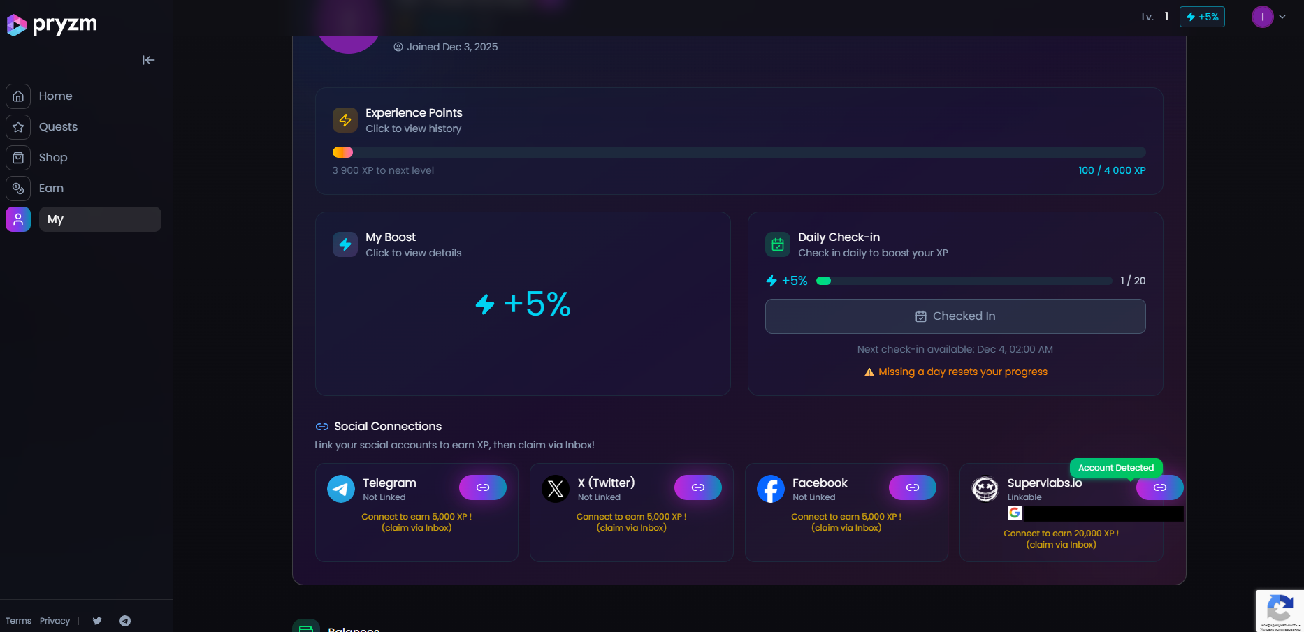 On January 5, 2026, Pryzm has paid out Season 1 rewards and launched Season 2 of its airdrop campaign. You can join the new season and work toward guaranteed rewards.