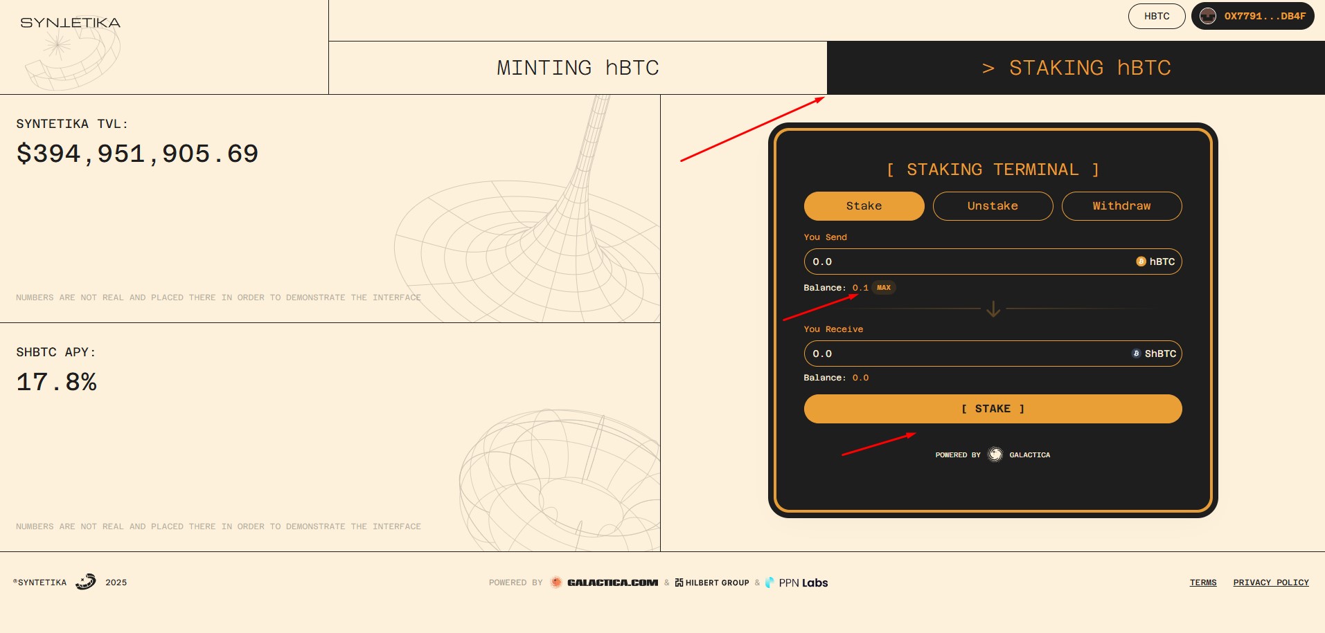 Go to the Unstake tab and make the screenshot. Unstake your shBTC, screenshot the cooldown. Withdraw your hBTC once cooldown has passed and make the screenshot.