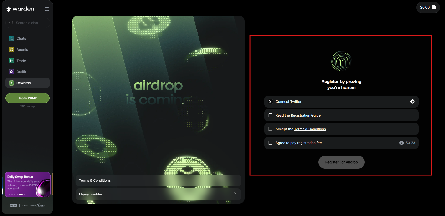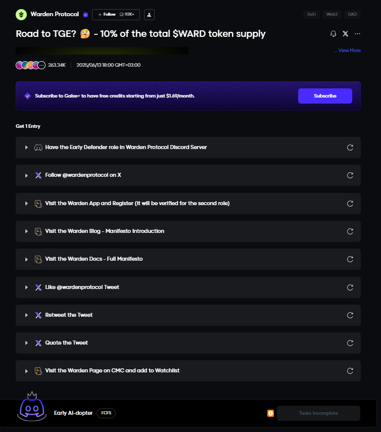 On May 27, 2025, Warden has launched a new activity called Warden Beta, where users can interact with AI, create and upgrade coins, invite friends, and make AI-powered swaps. This is one of the final activities before the upcoming airdrop.