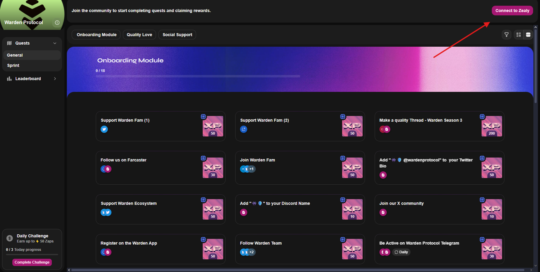 Kaito participants must link their X (Twitter) account to Warden to track campaign activity.